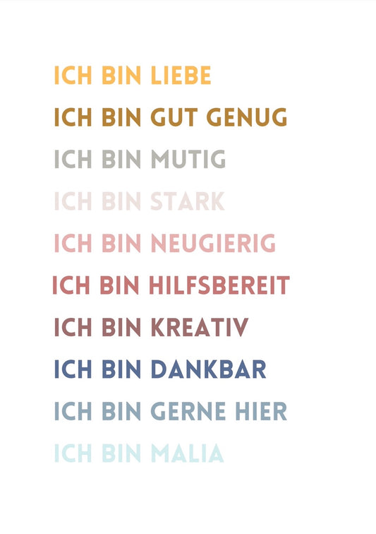 Affirmationen Kinder-Poster - personalisiertes Printable zum Download